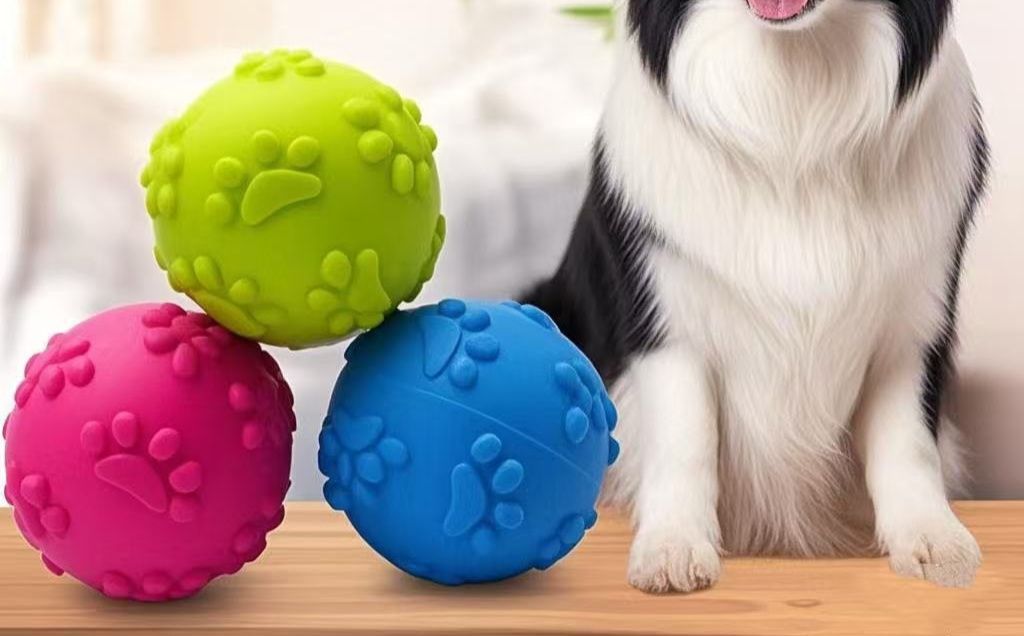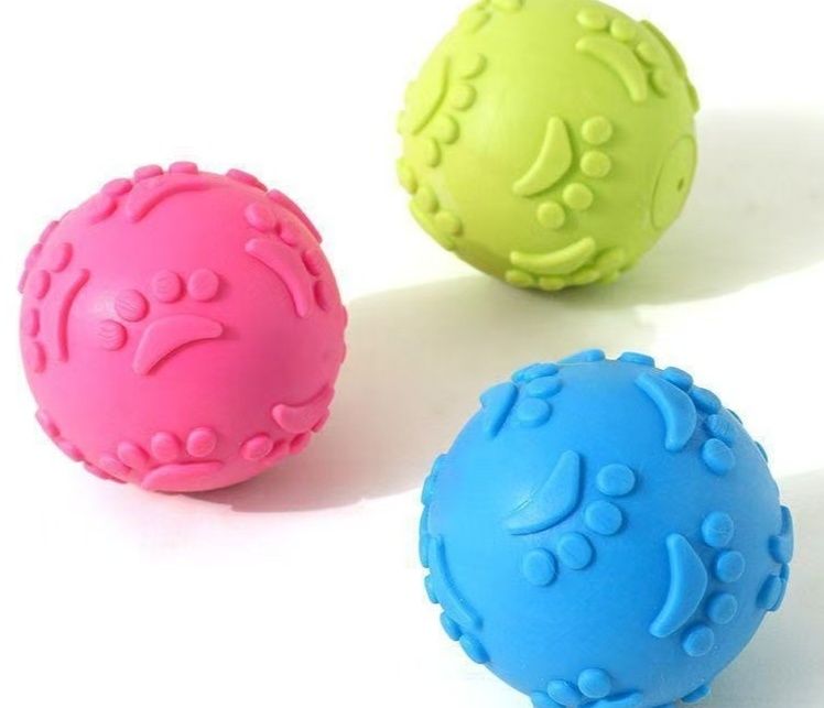 表面に可愛らしい肉球と足跡の立体模様が施された犬のおもちゃです。 柔軟性のあるゴム素材を使用しており、噛む力が強い愛犬でも安心して遊べるボールです。 凹凸のある表面が歯茎のマッサージ効果を促し、デンタルケアにも役立ちます。 弾力性に優れているため、投げて遊ぶ取ってこい遊びや噛んで遊ぶストレス解消にも最適です。 丈夫で長持ちする素材なので、毎日の遊び相手として活躍します。