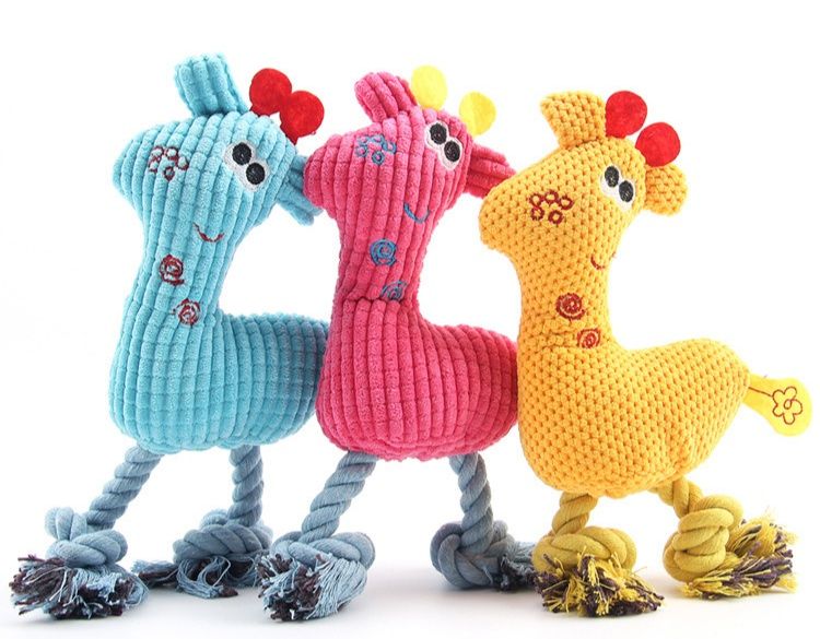 愛らしいキリンをモチーフにした犬のおもちゃです。 柔らかな起毛生地で作られたぬいぐるみは、優しい手触りで愛犬も大喜び。 両足部分は丈夫な縄素材を使用しており、噛んで遊ぶことで歯のケアやストレス解消にも役立ちます。 くりくりとした可愛らしい表情と立体的なフォルムが特徴で、投げたり引っ張ったりと様々な遊び方ができます。 小型犬から中型犬まで幅広くお楽しみいただけます。