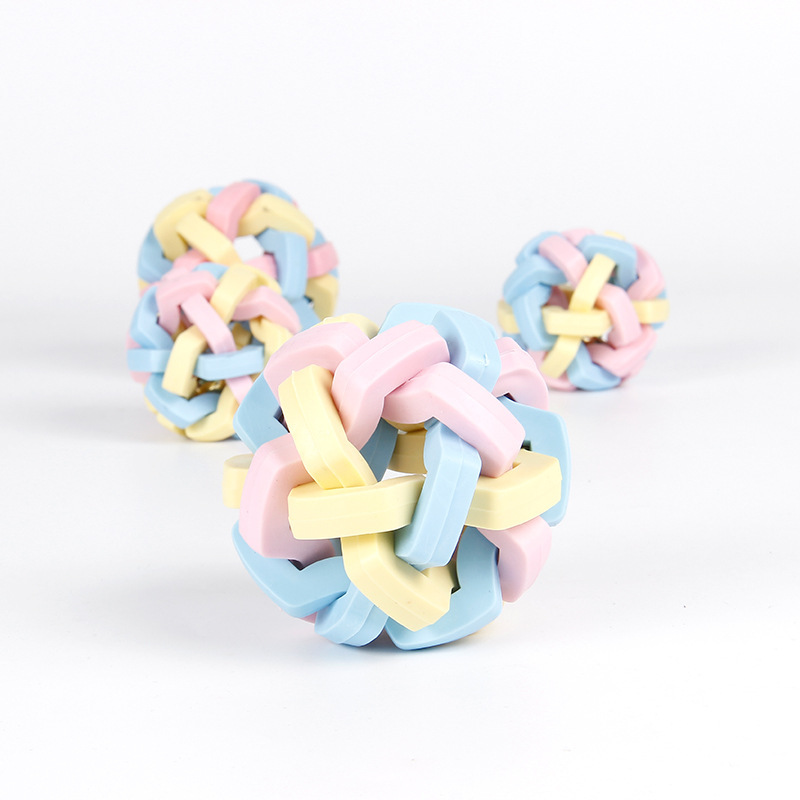 立体的に編み込まれたユニークなデザインが特徴の犬のおもちゃです。 ボールの表面には適度な凹凸があり、噛むことで歯の健康維持やストレス解消に役立ちます。 柔らかい素材を使用しているため、子犬から成犬まで安心して遊べます。 転がして追いかけたり、咥えて運んだりと様々な遊び方ができ、愛犬の運動不足解消や知育玩具としても最適です。 耐久性にも優れており、長くお使いいただけます。