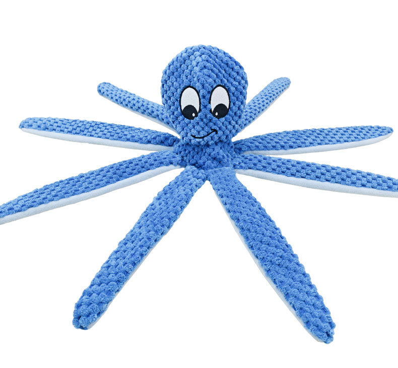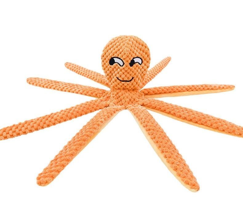 かわいい表情のタコをモチーフにした犬のおもちゃです。 八本の長い足は噛むのに最適で、愛犬のストレス解消や歯の健康維持に役立ちます。 丈夫な編み込み素材を使用しているため、長時間遊んでも安心です。 引っ張り遊びにも最適で、飼い主さんとのコミュニケーションツールとしても活躍します。 ユニークなデザインで愛犬の遊び心を刺激する人気アイテムです。