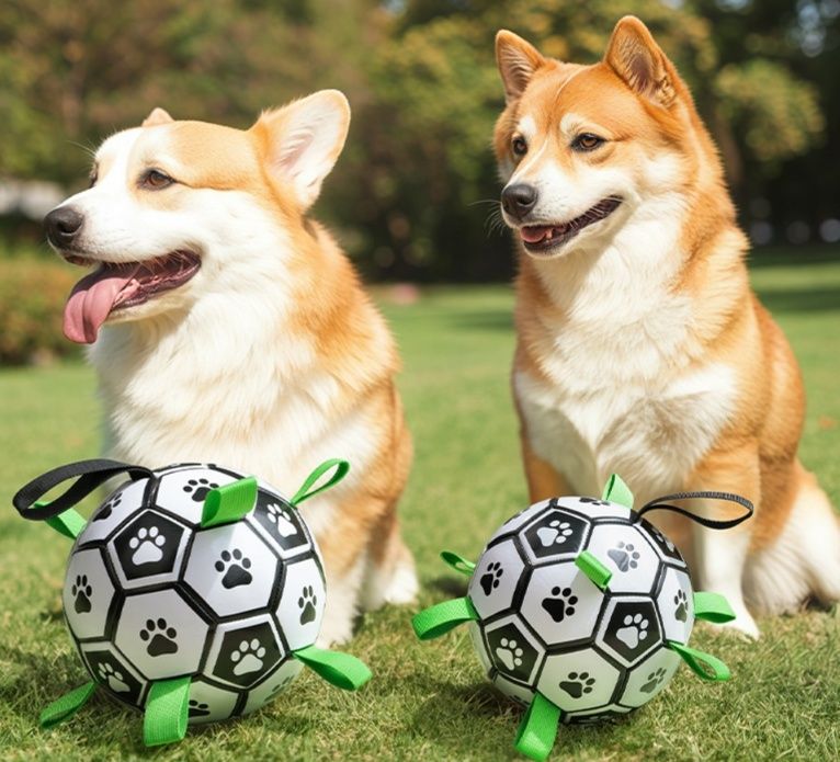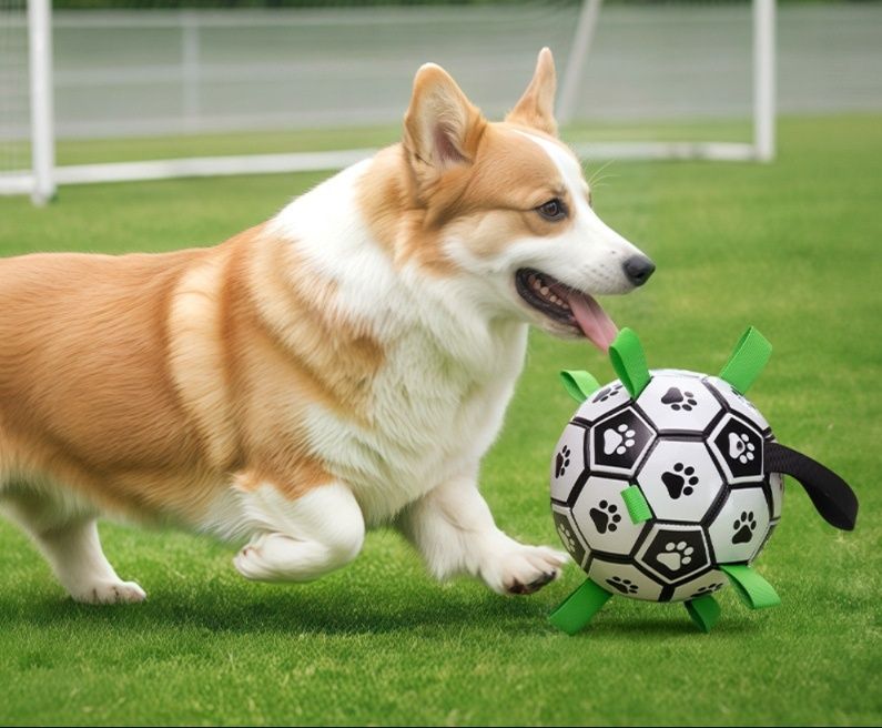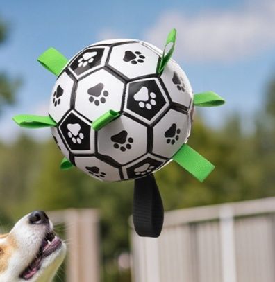 可愛い肉球模様がデザインされたサッカーボール型の犬のおもちゃです。 複数のリボンが付いているので、愛犬が咥えやすく投げて遊ぶのに最適なボールです。 丈夫な素材で作られており、屋外での遊びや運動不足解消にぴったりです。 飼い主様との楽しいキャッチボール遊びで、愛犬との絆を深めることができます。 小型犬から中型犬まで幅広くお使いいただける人気の商品です。