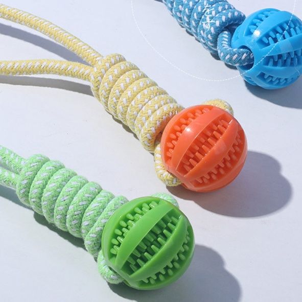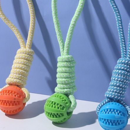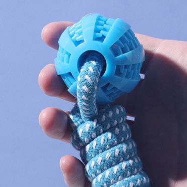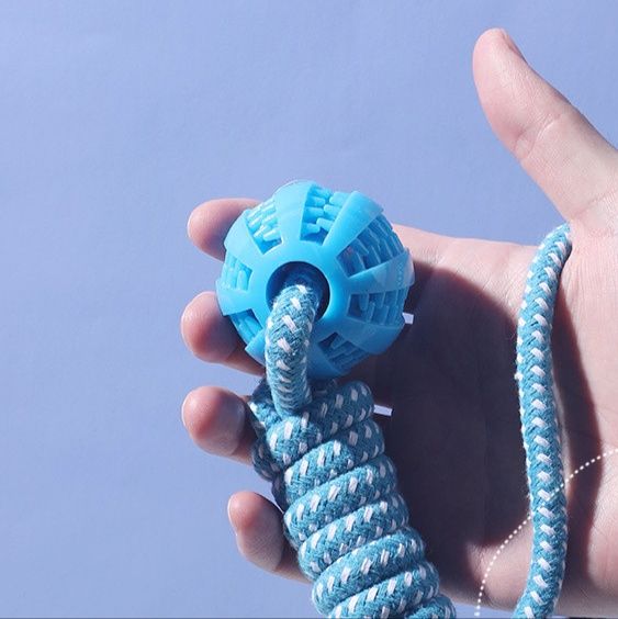 丈夫な編み込みロープと歯磨き効果のあるボールを組み合わせた犬のおもちゃです。 ボール部分には歯垢除去に役立つ凹凸加工が施されており、噛むことで自然とデンタルケアができます。 持ち手部分のロープはしっかりと編み込まれているため、引っ張り遊びにも最適です。 投げて取ってこさせる遊びや、飼い主さんとの綱引き遊びなど、様々な使い方で愛犬の運動不足解消とストレス発散をサポートします。